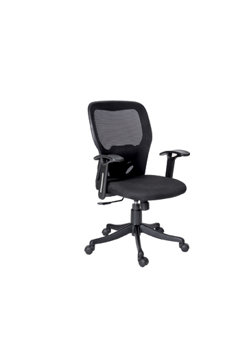 Medium Back Chair with Adjustable P.U Arms, Gas Lift, Nylon Base, Twin Wheel Nylon Castors, Seat and Back Net Tapestry,Synchro Tilt