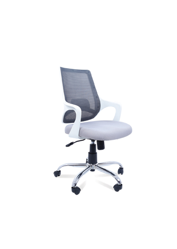 Medium Back Chair in Grey Back, Grey Arms, Gas Lift, Chrome Base, Twin Wheel Nylon Castors, Net Back and Seat Fabric Tapestry.Swivel Tilt