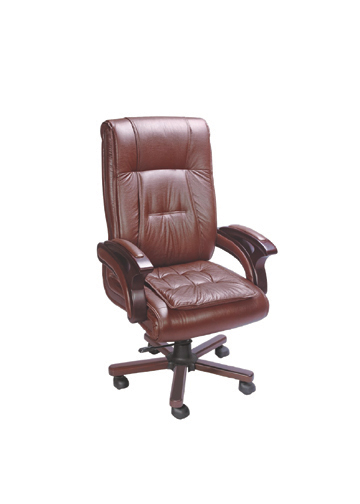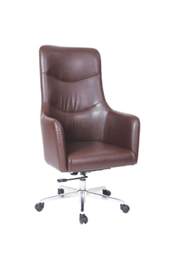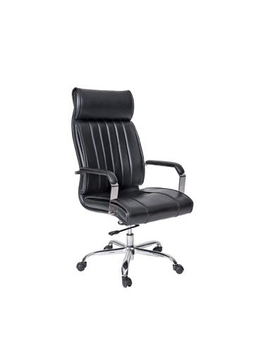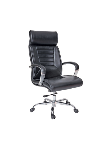 High Back Chair, Wooden Frame, Cushion Arm, Leatherite Tapestry, Gas-Lift, Chrome Plated Base,Torsion Bar