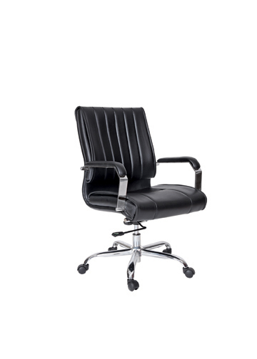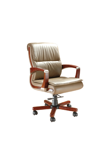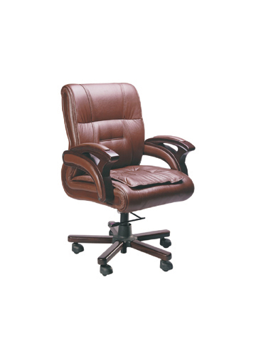 Medium Back Chair, Wooden Frame, Cushion Arm, Leatherite Tapestry, Gas-Lift, Chrome Plated Base,Torsion Bar
