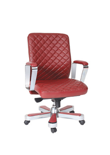 Medium Back Chair with Chrome Cushioned Arms, Metal Designer Base, Gas Lift, Twin Wheel Nylon Castors & Leatherite Tapestr,Synchro Knee Tilt