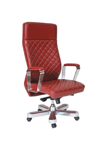 High Back Chair with Chrome Cushioned Arms, Metal Designer Base, Gas Lift, Twin Wheel Nylon Castors & Leatherite Tapestry,Synchro Knee Tilt